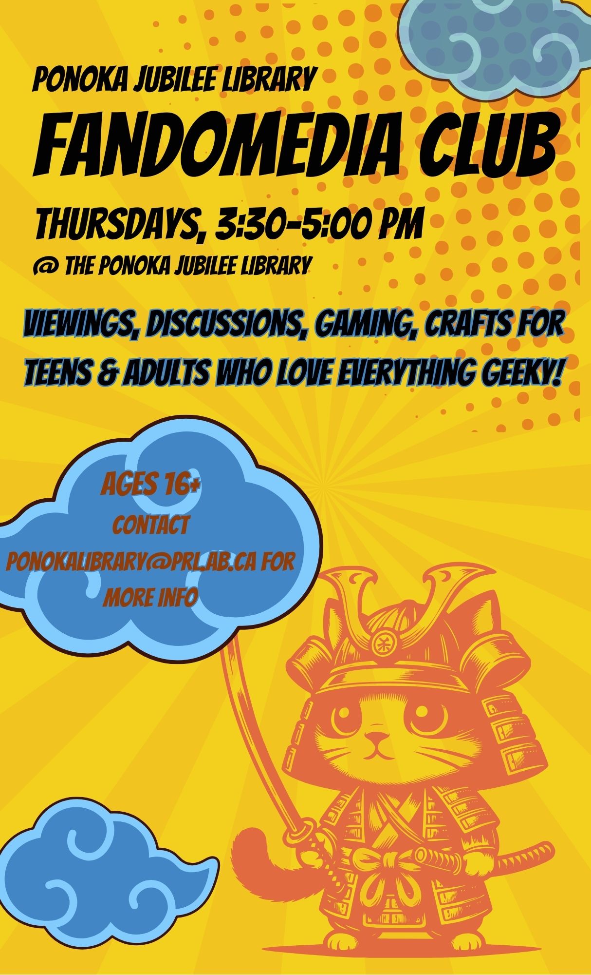 The event is recommended for ages 16+. Contact Cynthia at ponokalibrary@prl.ab.ca for more information.