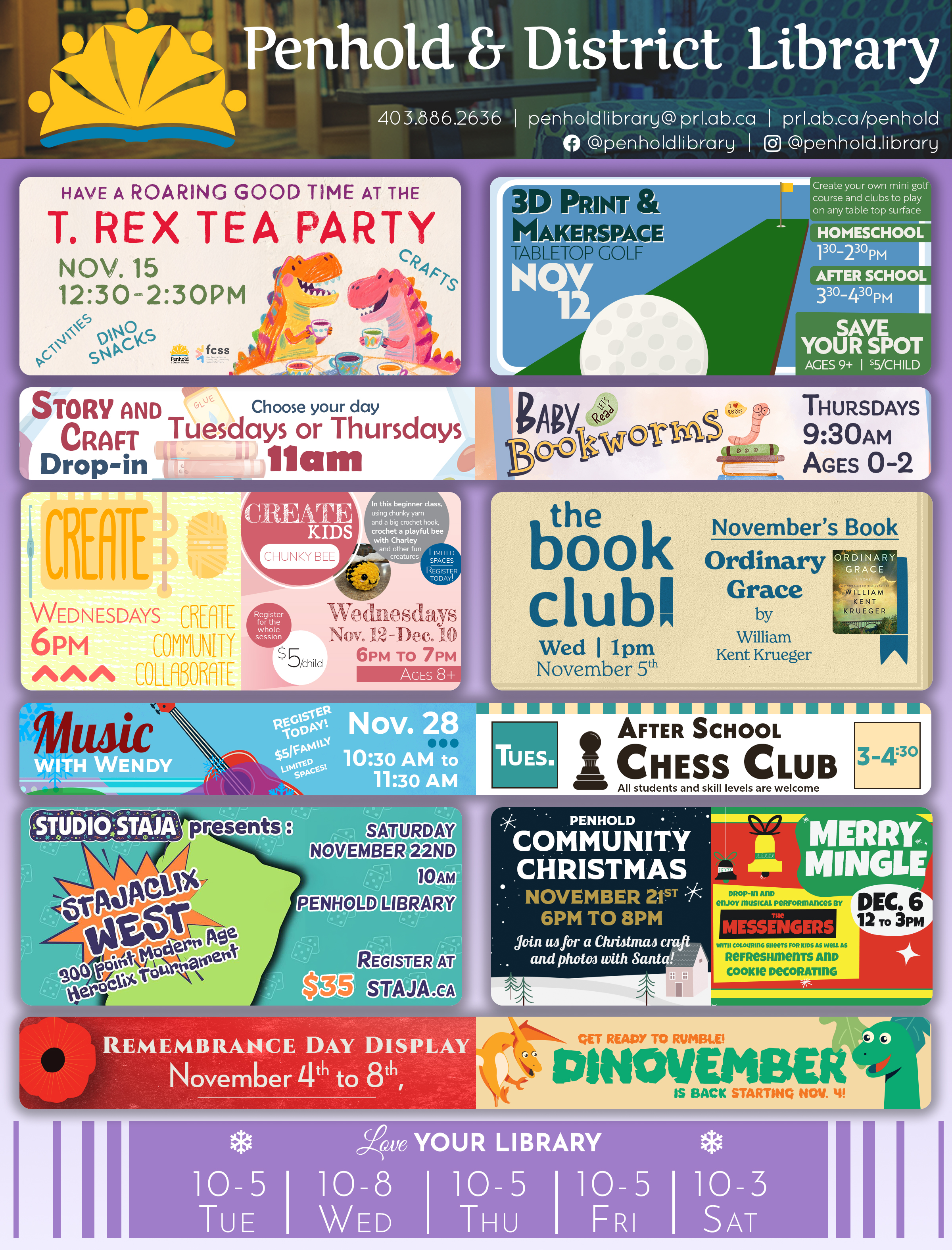 Here you can take a quick look at (almost) everything that is happening each month. Then head over the Events tab to find out more details about each program. Also check out our Events Calendars to see the programs in a helpful monthly calendar format.